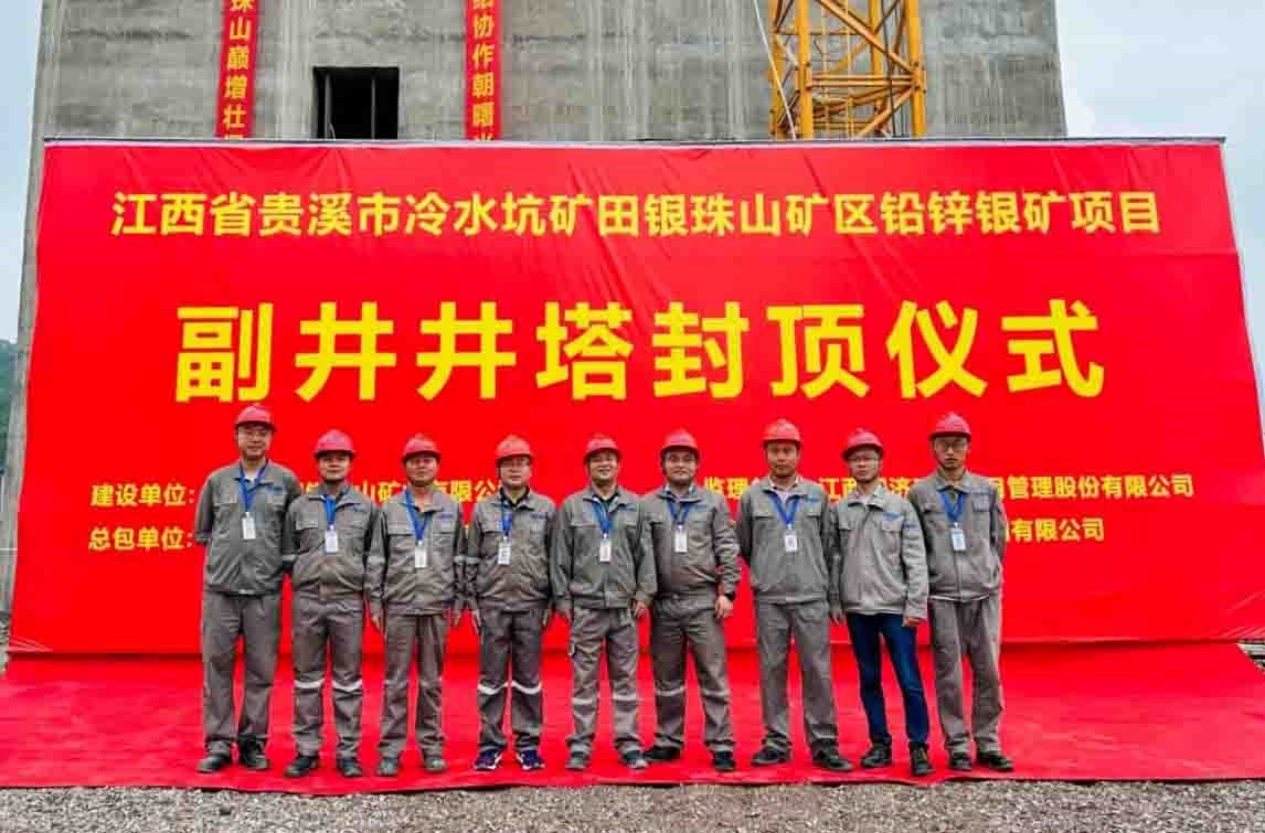 4月20日,由中国瑞林EPC总承包的江西省贵溪市冷水坑矿田银珠山矿区铅锌银矿项目举行副井井塔封顶仪式。