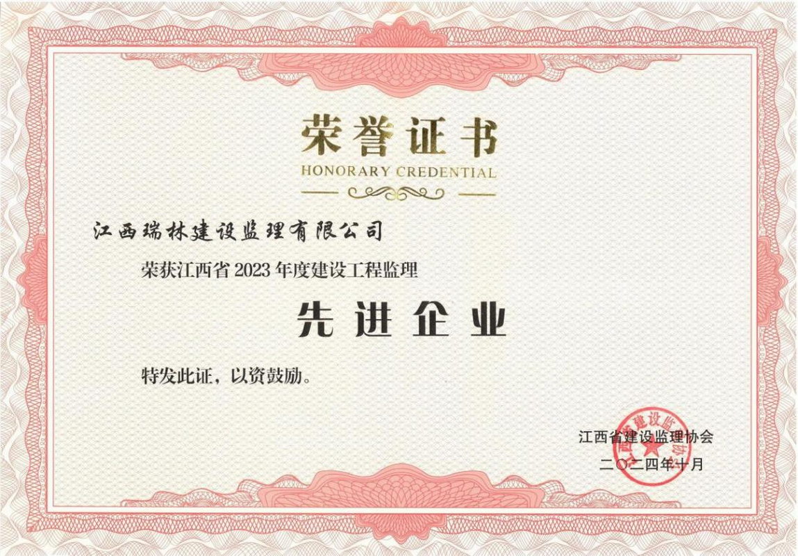 中国瑞林:监理公司荣获“AAA级中国乐竞(中国)监理信用企业”和江西省“2023年度建设乐竞(中国)监理先进企业”称号